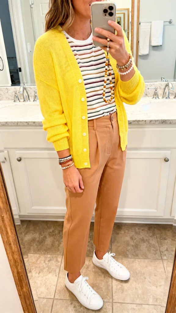 Finally, a hint of color can elevate a practical outfit from fine to unforgettable. Think a bright scarf, bold earrings, or a statement belt—just enough to show personality without stealing focus from the students.